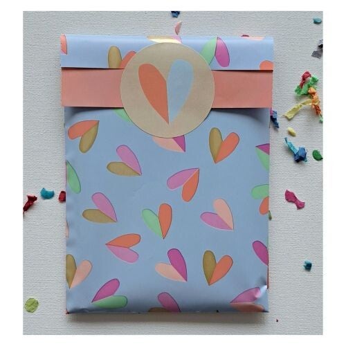 Een schattig cadeauzakje met een hartjes patroon, ideaal voor het verpakken van cadeautjes, sieraden, snoepjes e.d. Gebruik deze zakjes om snel te kunnen inpakken, zonder gedoe met een grote rol inpakpapier.