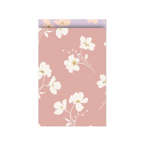 Voeg een vrolijke finishing touch toe aan elk cadeautje met dit dubbelzijdig bedrukte cadeauzakje. Aan de ene kant straalt een speels roze bloemenpatroon, terwijl de andere zijde een zachte lila tint met bijpassende bloemetjes laat zien. Perfect voor kleine presentjes, traktaties of bedankjes.
