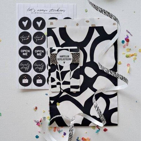 Geef je cadeau een stijlvolle en speelse look met deze cadeauzakjes in een trendy zwart-wit uitvoering! Ideaal voor het inpakken van kleine geschenken, zoals een sieraad, cadeaubon of een ander bijzonder kleinigheidje.